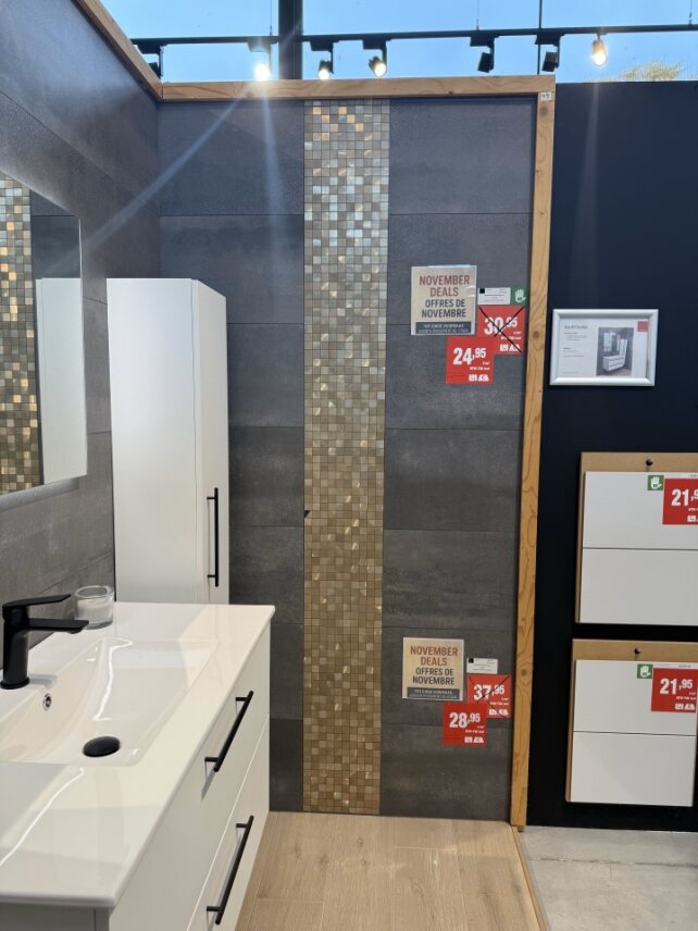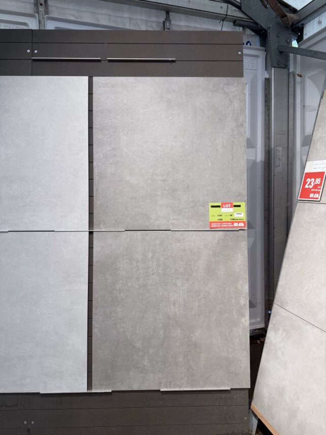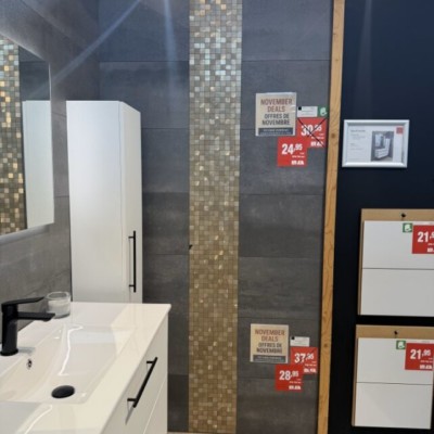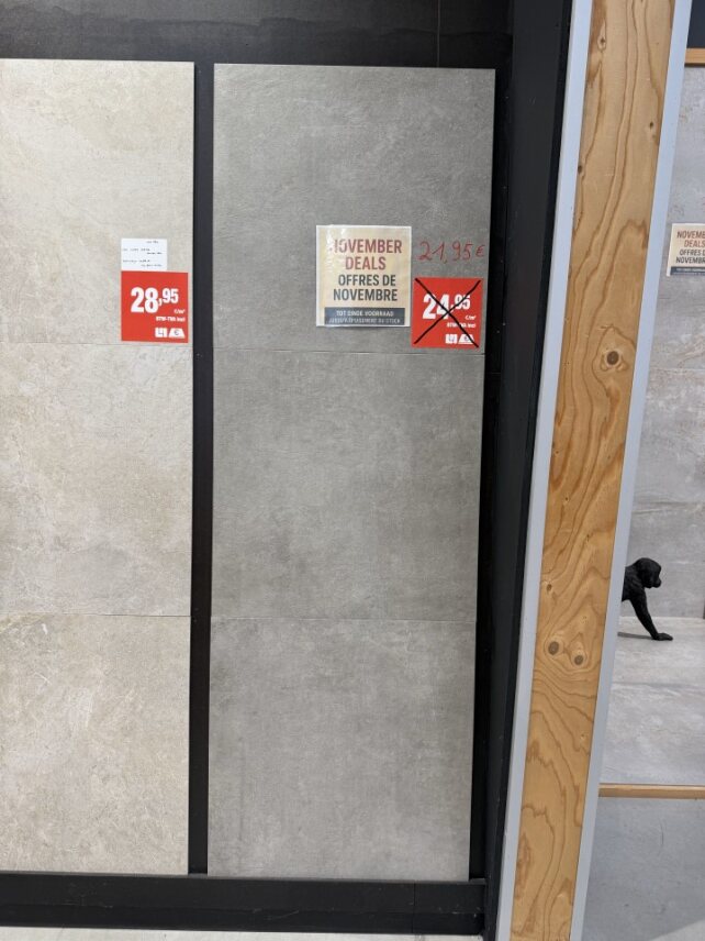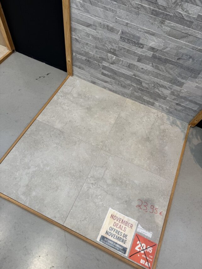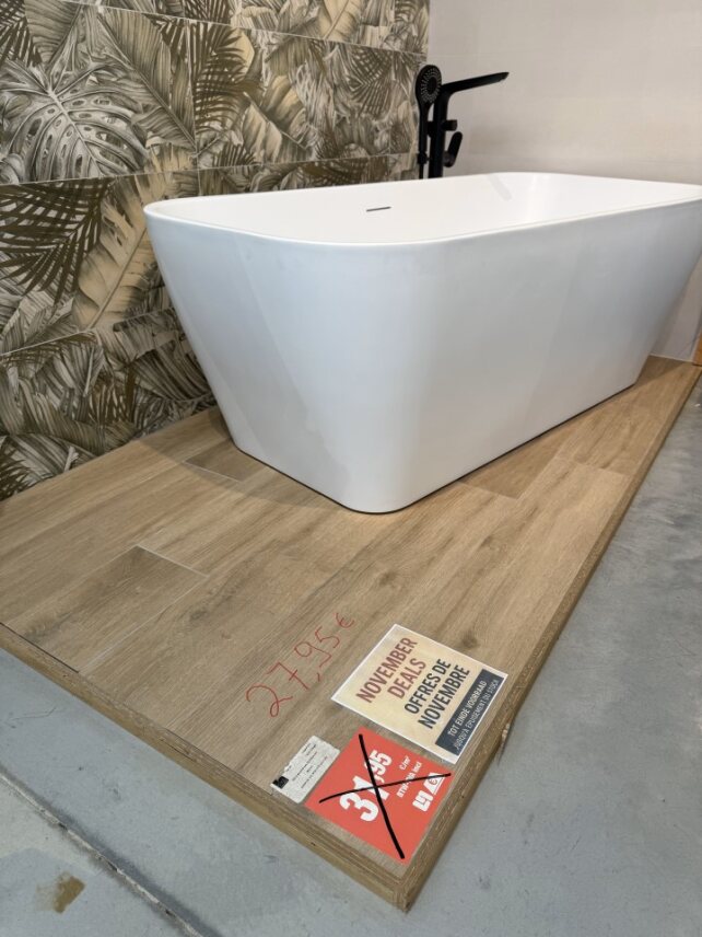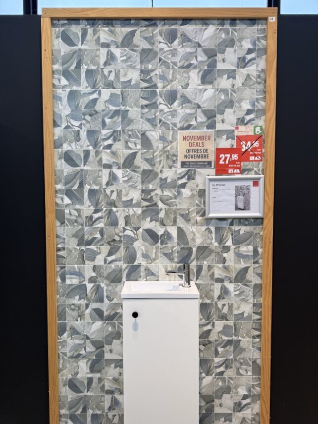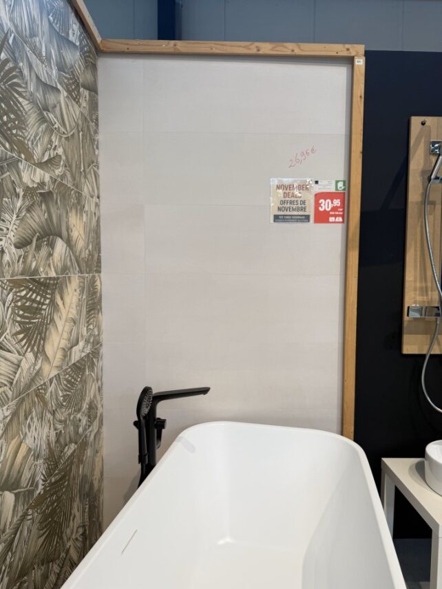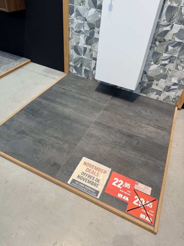 Het aanbod verandert voortdurend: soms een klein lot voor een badkamer, soms genoeg voor een volledig project. Altijd stijlvol, altijd scherp geprijsd.